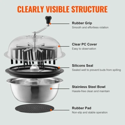 Visible Operation: With the clear lid of our leaf bowl trimmer, you can see the trimming in action from the front row. Watch your buds change before your eyes. The 19” stainless steel trim bowl is convenient to clean up in time and provide a clean and non-stick pruning surface, while the rubber pad ensures stability, keeping the trimmer securely in place for flawless trims.
