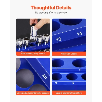 Built to Last: Made from reinforced ABS material, our socket organizer tray resists impact and wear. The clear size labels won’t fade over time, ensuring long-lasting convenience.