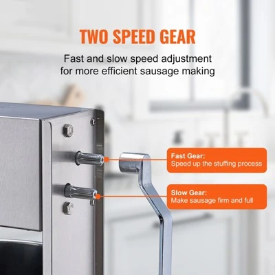 Dual Speed Adjustment (Fast/Slow): Offers two speeds: fast for quick sausage filling and slow for precise casing filling. It features ergonomically designed comfortable handles for efficient and easy operation.