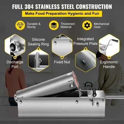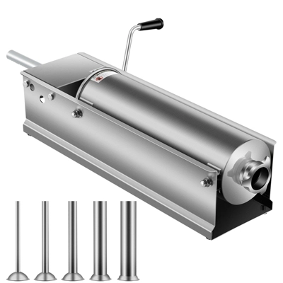 Multiple Filling Tubes: Comes with five stainless steel filling tubes to meet various size requirements, ideal for making sausages, hot dogs, churros, and snack sticks, suitable for both commercial and home use.