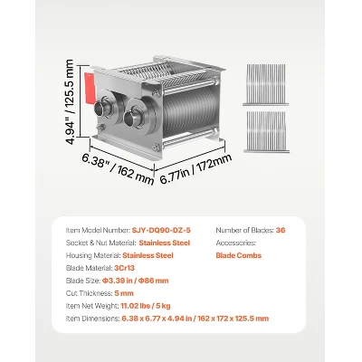 Effortless 5 mm Cuts: Equipped with sharp Ф86 mm blades, our commercial meat slicer blade set delivers 5 mm thick slices. Moreover, the notch design allows meat to drop off effortlessly, making it great for boneless meats and soft vegetables. Whether slicing, shredding, or dicing, this slicer gets the job done fast.