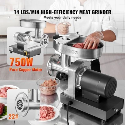 Fast Meat Grinding: The commercial countertop meat grinder, mouth size 22#, features a highly efficient 750W pure copper motor capable of grinding 14 lbs of meat per minute. It can operate continuously without interruption, making it ideal for large-scale commercial meat grinding needs. Avoid letting the grinder idle for too long as it may damage the motor. Remember to promptly turn off the power when not in use.
