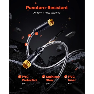 Durability & Longevity: This metal garden hose features a high-quality stainless steel outer layer, offering exceptional wear and corrosion resistance. Built for long-term use in all environments, it reduces replacement frequency and saves costs.
