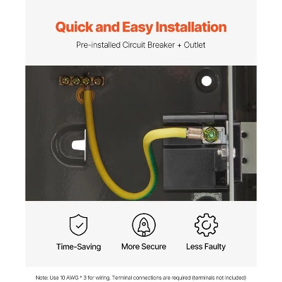 - Single 20 Amp outlet with ample wiring space for easy connections.