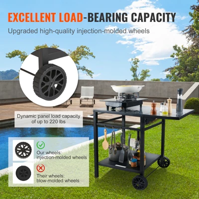Multifunctional BBQ Station: A bbq movable food prep table that can be used both indoors and outdoors. In addition to being used as a barbecue table or pizza oven stand, it can also be used for food preparation, storage, outdoor dining, and more, catering to your various outdoor cooking needs.