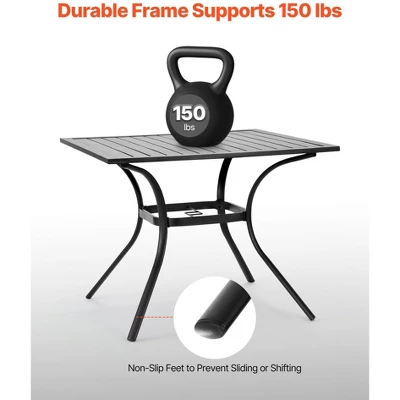Rust and Weather Resistant: Crafted with galvanized carbon steel, the patio table’s tabletop is built for longevity and stands up to harsh outdoor conditions. Simply wipe away grease or spills with a damp cloth—no special maintenance required