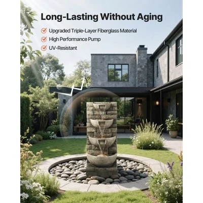 Durable Materials: Made from weather-resistant resin and triple-layer fiberglass, this water fountain withstands wind, harsh sunlight, and extreme temperatures. It’s built to last and remains colorfast, ideal for gardens, yards, and patios