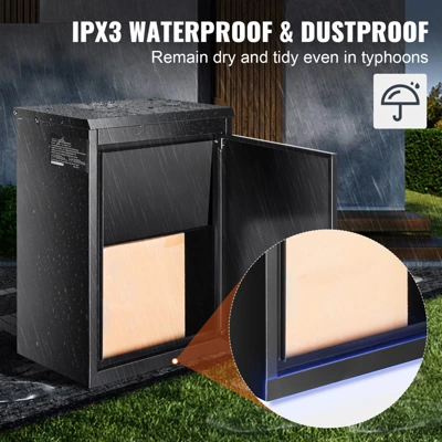 Multiple Anti-Theft Protections: Don’t worry about losing keys and being unable to retrieve your parcels. VEVOR 15.4″ x 10.6″ x 20.5″ package delivery box for outside is equipped with a secure password lock and internal hinge to ensure your packages are well-protected. A large anti-theft baffle has also been added to the drop slot, preventing parcels from being fished out.