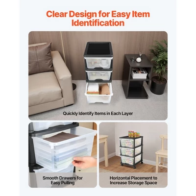 Visible for Easy Access: The transparent front panel allows users to see the contents clearly, saving time when searching for items. The sliding plastic drawers storage design makes it easy to retrieve items, enhancing storage efficiency.