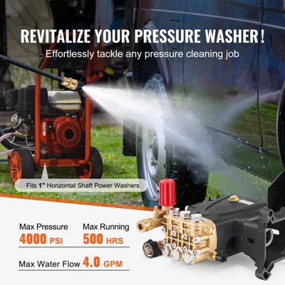 High-Efficiency Cleaning Power: Our pressure washer pump delivers up to 4000 PSI of powerful water pressure with a maximum flow rate of 4.0 GPM, ensuring fast completion of tasks ranging from household cleaning to light industrial jobs. (Recommended working pressure: 3100 PSI for typical residential and light industrial cleaning and to extend pump life.)