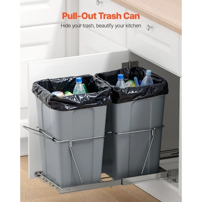 Dual 27QT Capacity: Our pull out garbage can comes with a 27 + 27QT large capacity, perfectly meeting the needs of both home and commercial use. It helps eliminate the hassle of frequent trash disposal. The dual-bin design also aids in waste sorting. With bottom installation, it can hold up to 25 kg / 55.12 lbs of trash and slides in and out effortlessly