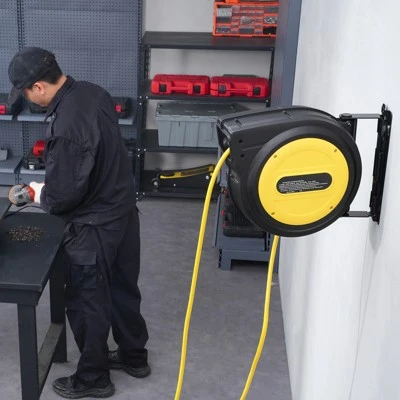 Versatile and User-Friendly: This retractable cord reel is designed for easy installation on walls or ceilings, featuring a 180° swivel bracket for effortless access from any direction. Enjoy the convenience of smooth cable extension and retraction, while keeping your workspace organized and free from tangled cords and trip hazards.