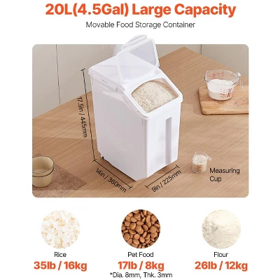 Extra-large & Space Saver: Maximize your storage with this rice storage container! Depending on the size and density of your dry goods, it can hold approximately 35 pounds of rice or 17 pounds of pet food. Note: The capacity will vary depending on your dry food’s size, shape, and density.