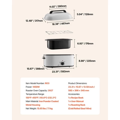 Large 26QT Capacity: VEVOR electric roaster oven easily accommodates an entire turkey in its generous 26QT size. Ideal for Thanksgiving, Christmas parties, or weekend dinners, it makes family meals and festive gatherings simple and impressive.