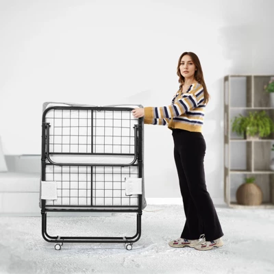 Easy to Fold and Store: This rollaway bed is convenient and quick to use. One person can easily fold and unfold it. It expands to a large size but folds to a compact size, making it easy to store in a corner without taking up much space. You can also use the included dust coverlet to shield it from dirt.