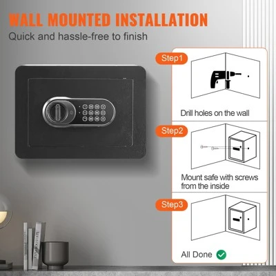 Wall Mounted Design: The safe comes with four pre-drilled holes and four expansion screws for secure installation on the wall, floor, or shelf. The internal shelf is also removable, allowing you to store larger valuables with ease.