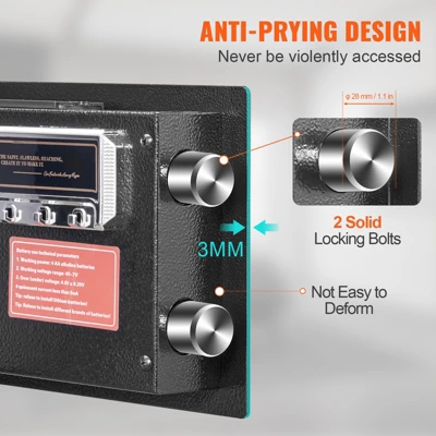 Give You Max Protection: Our CE certified safe is constructed using high-quality alloy steel and has increased thickness in both the box body and door panel, ensuring maximum security. It features two solid door bolts with a diameter of φ1.1 in/28 mm, providing top-notch protection against any attempts at breaking in.