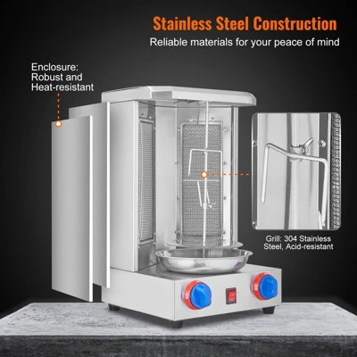 Premium Stainless Steel Build: Our shawarma machine boasts a robust and long-lasting stainless steel construction with a high-quality 304 stainless steel grille. It not only ensures exceptional corrosion resistance and heat endurance but also provides a sleek and easy-to-clean surface that requires no special maintenance. It’s time to take your cooking to the next level!
