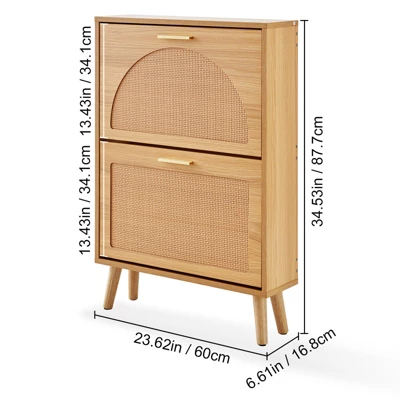 Minimalist & Versatile Design: Featuring a classic wood color, real wood legs, and aluminum alloy handles, our shoe cabinet for entryway boasts a simple yet stylish design that matches perfectly with various home decor styles, enhancing overall coordination and aesthetics.