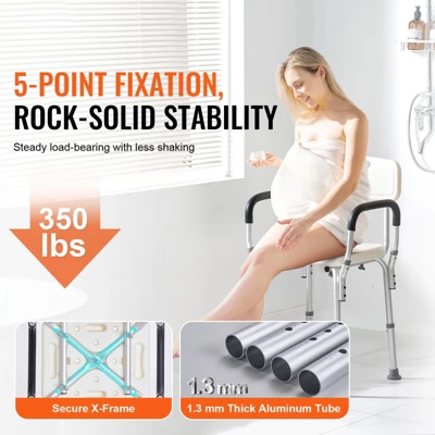 350 LBS Stable Structure: Engineered with PE and industrial-grade aluminum alloy with 5 reinforced screws situated under the seat for extra support, our shower chair supports up to 350 lbs (158.8 kg). The shower chair for inside shower combines a rust-proof, corrosion-resistant structure with a lightweight design, ensuring it is easy to carry. Ideal for seniors, disabled individuals, pregnant women, and post-surgery patients.