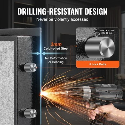 Maximum Protection: The safe box is made from high-quality alloy steel with a 3mm thick door plate to ensure maximum security. Equipped with 5 solid door bolts, it provides superior protection against any attempted break-ins.