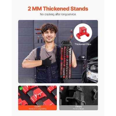 Built to Last: Featuring a heavy-duty steel base, high-quality ABS clips and rails, this socket holder withstands heavy loads without bending or breaking, ideal for frequent use and long-term reliability.