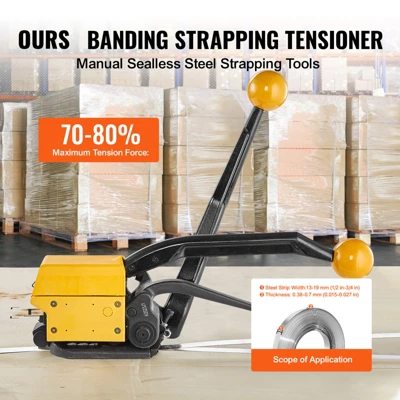 Fits Most Steel Straps: Our banding strapping tool is the perfect fit for steel straps ranging from 1/2″ to 3/4″ (13-19 mm) in width and 0.015″ to 0.027″ (0.38-0.7 mm) in thickness. Unlike the rest, it handles those beefier, wider steel straps with ease, making it your go-to strapping sidekick.