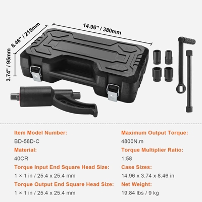 High Performance, Less Effort: The efficient 1:58 gear ratio enables the torque multiplier to deliver up to 4800Nm of output torque, allowing you to easily loosen even the most stubborn nuts quickly without the need for any additional power tools.