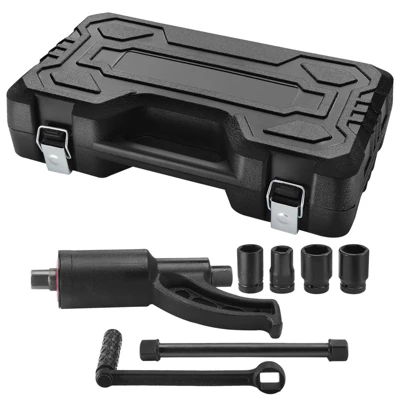 - Includes 1″ drive wrench and 4 sockets for removing stubborn lug nuts.