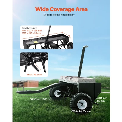 100lbs Load Capacity: The high-load capacity tray of tow behind aerator allows you to place heavier items, increasing the spike penetration power. Each spike is designed with a protective edge to reduce risks. The reinforced bars and universal hitch easily connect to various tractors and are durable and long-lasting.