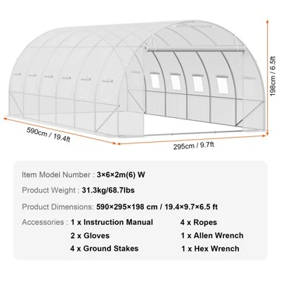 Spacious Walk-In Design: With a spacious 19.36×9.68×6.50 ft area, this walk-in greenhouse tunnel is ideal for a variety of plant needs. It allows easy management and maintenance, and accommodates multiple plant shelves, making it ideal for both home and commercial gardening.