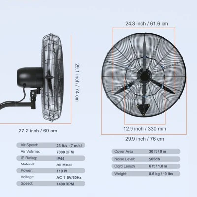 Wall Mount Oscillating Fan: Get ready to reach every corner of the room! The 24.3” industrial wall fan provides a 90-degree oscillating function that allows the fan to cover a wide area. It also can be tilted vertically for optimum airflow. Get ready for a complete heavy-duty metal construction with minimal screw mounting for easy disassembly and cleaning.