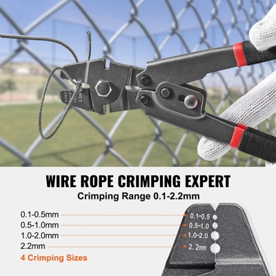 Crimp and Cut in One Go: Our manual crimping tool is a 2-in-1 tool for crimping and cutting. Crimping clamp range: 0.1-0.5mm, 0.5-1.0mm, 1.0-2.0mm, 2.2mm. Cutting wire diameter range: 0.1-2mm.